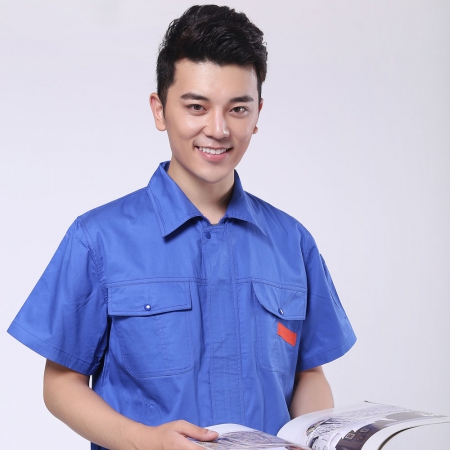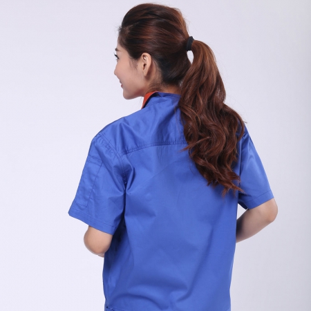 深蓝配桔红短袖工作服AD069