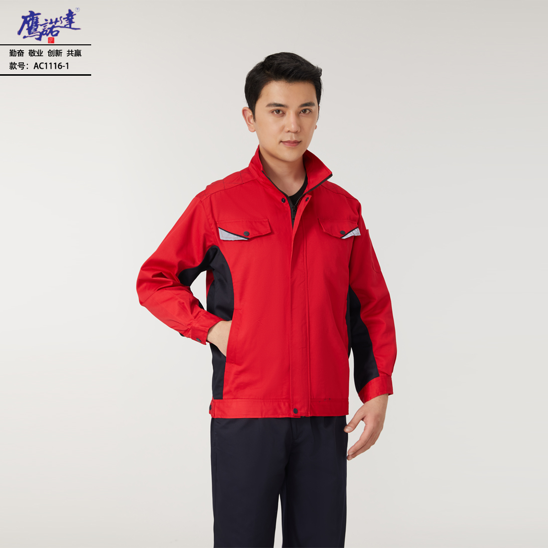 红色拼藏青工作服AC13-2