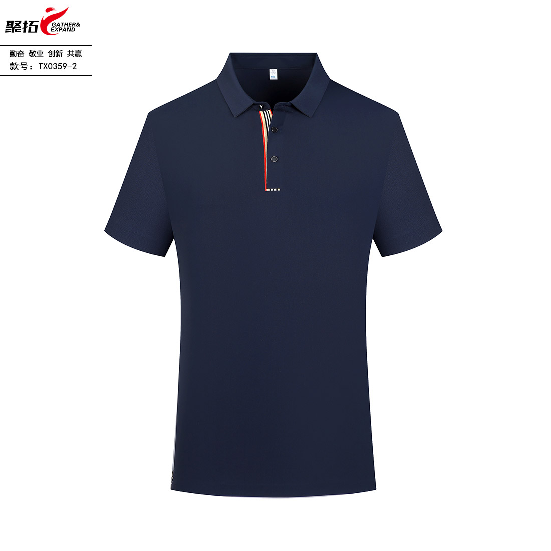 苏州鹰诺服装:藏青拼大红工作服AD103